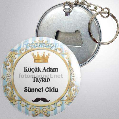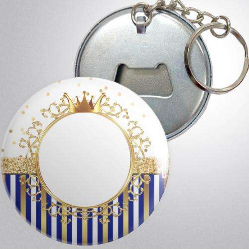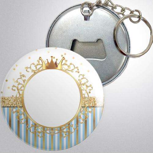 Prens Taçlı Mavi Dore - Fotoğraflı - Metal - Açacak - Anahtarlık