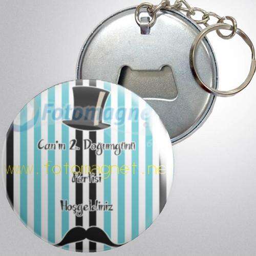 Şapka Ve Papyon Temalı - Fotoğraflı - Metal - Açacak - Anahtarlık