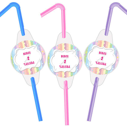 Renkli Yıldızlar Temalı - Fotoğrafsız - Pipet