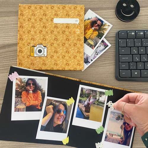 Ahşap Kapaklı Siyah Yapraklı Anı Kitabı Ve 27 Adet 6x6 Cm Fotoğraf Ve 100 Renkli Mini Etiket