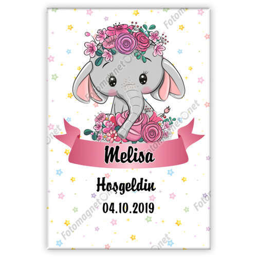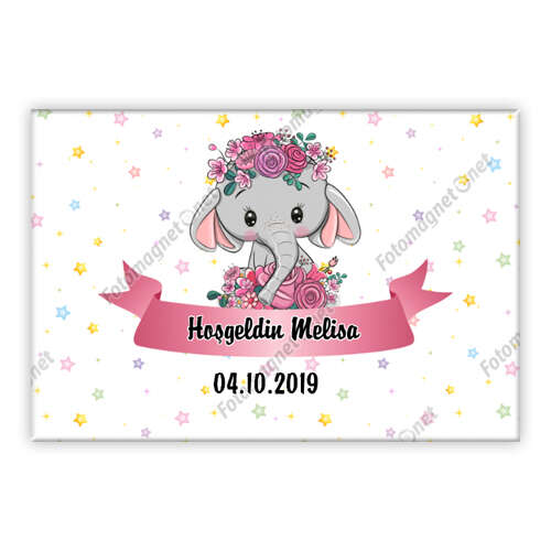 Çiçekli Fil Temalı - Hoş Geldin Bebek - Magnet - Açacak