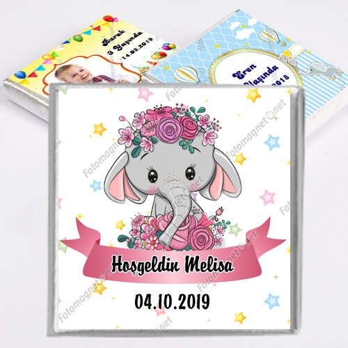 Çiçekli Fil Temalı - Hoş Geldin Bebek - Çikolata Sargısı