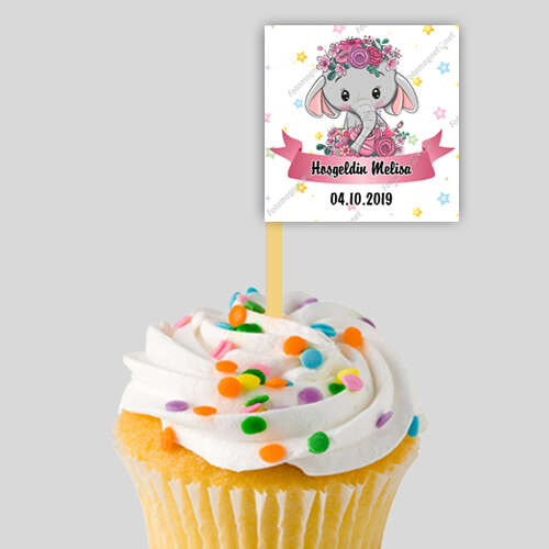 Çiçekli Fil Temalı - Hoş Geldin Bebek - Kürdan Bayrak