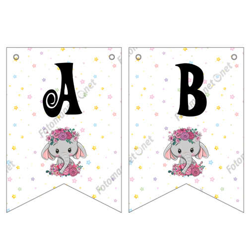 Çiçekli Fil Temalı - Hoş Geldin Bebek - Banner - Flama - İkili