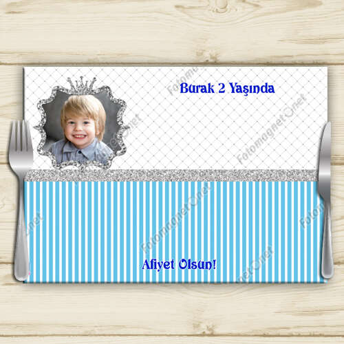 Mavi Gümüş Renklerde - Fotoğrafsız - Sargılı Çikolata Etiketi
