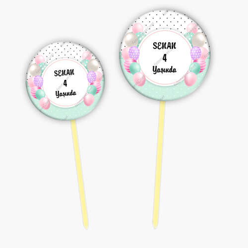 Pembe Yeşil Balonlu - Fotoğrafsız - Kürdan Süs