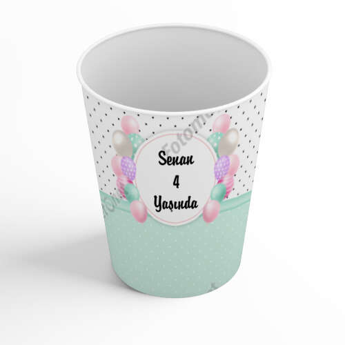 Pembe Yeşil Balonlu - Karton Bardak - Sargı Etiketi
