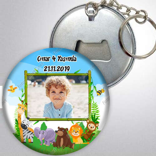 Sevimli Hayvanlar Temalı - Fotoğraflı - Metal - Açacak - Anahtarlık