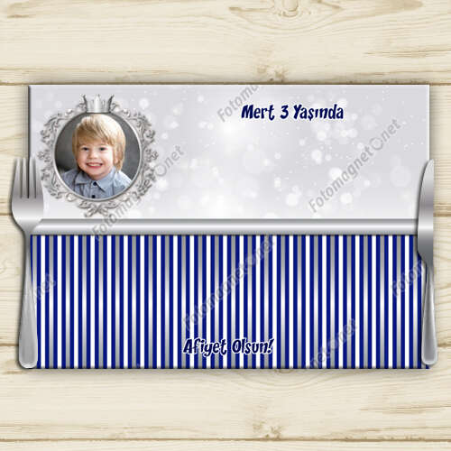 Prens Temalı Lacivert Gümüş - Sargılı Çikolata Etiketi