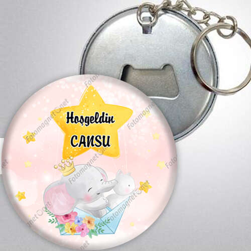 Fil Ve Kedi Temalı - Hoş Geldin Bebek - Metal - Açacak - Anahtarlık