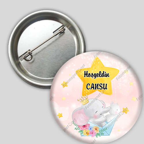Fil Ve Kedi Temalı - Hoş Geldin Bebek - İğneli Buton Rozet
