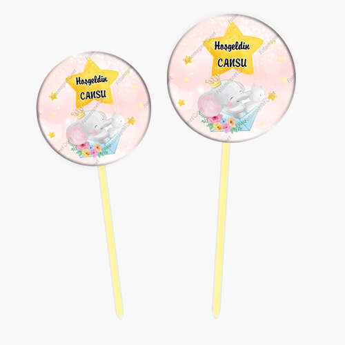 Fil Ve Kedi Temalı - Hoş Geldin Bebek - Kürdan Süs