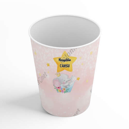 Fil Ve Kedi Temalı - Hoş Geldin Bebek - Karton Bardak - Sargı Etiketi