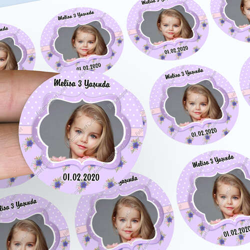 Lila Beyaz Çiçek Temalı - Kare - Etiket -