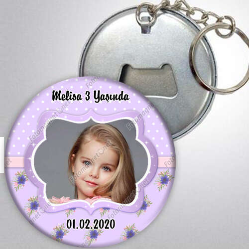 Lila Beyaz Çiçek Temalı - Metal - Açacak - Anahtarlık