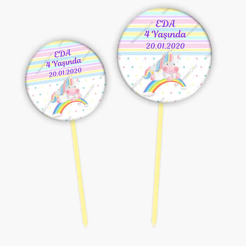 Unicorn Ve Gökkuşağı Temalı - Fotoğrafsız - Kürdan Süs