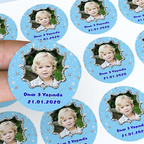 Mavi Gümüş Yıldız Temalı - Fotoğrafsız - Sticker