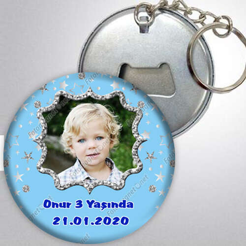 Mavi Gümüş Yıldız Temalı - Fotoğrafsız - Metal - Açacak - Anahtarlık