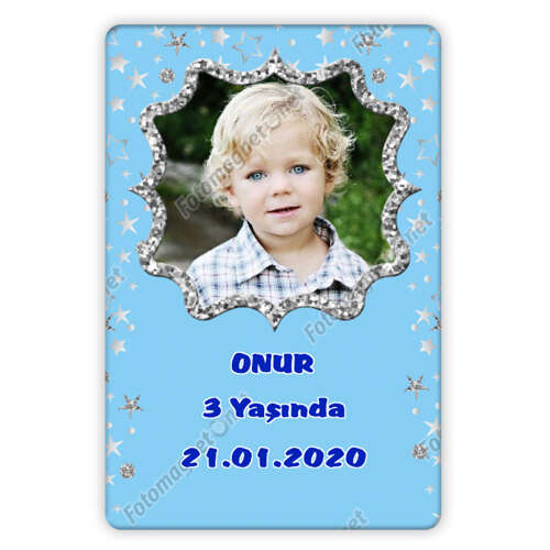 Mavi Gümüş Yıldız Temalı - Fotoğrafsız - Metal - Magnet - Açacak