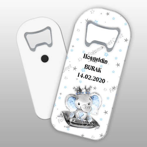 Prens Taçlı Fil Temalı - Fotoğrafsız - Metal - Magnet - Açacak