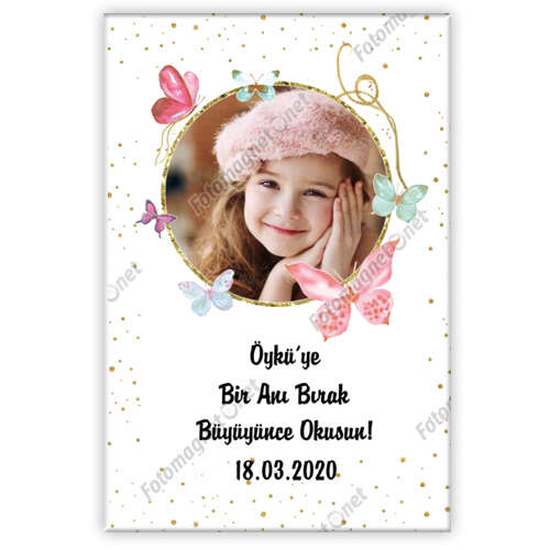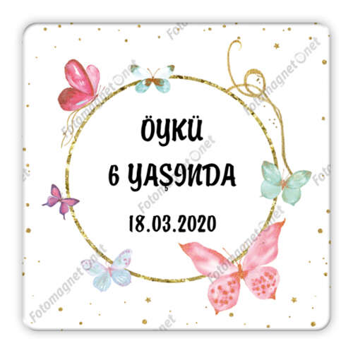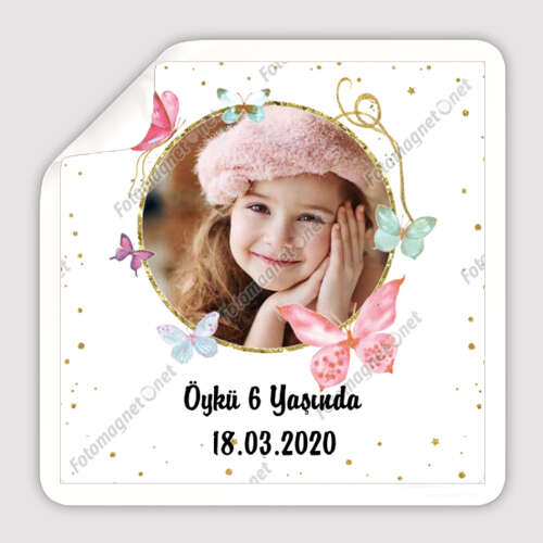 Kelebek Temalı Dore Beyaz - Fotoğraflı - Kare - Etiket -