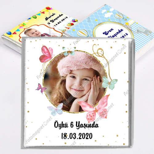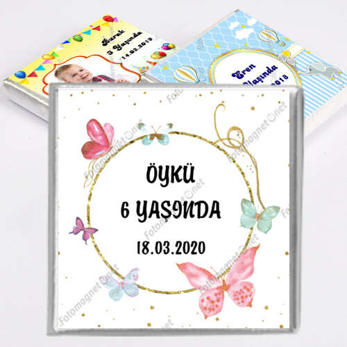 Kelebek Temalı Dore Beyaz - Fotoğraflı - Sargılı Çikolata Etiketi