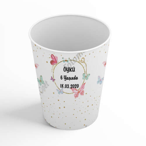 Kelebek Temalı Dore Beyaz - Karton Bardak - Sargı Etiketi