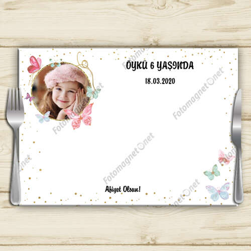Kelebek Temalı Dore Beyaz Mama Kartı