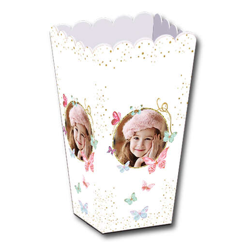 Kelebek Temalı Dore Beyaz - Popcorn Kutusu