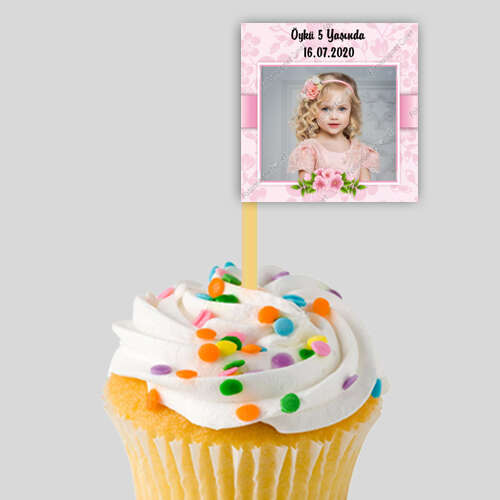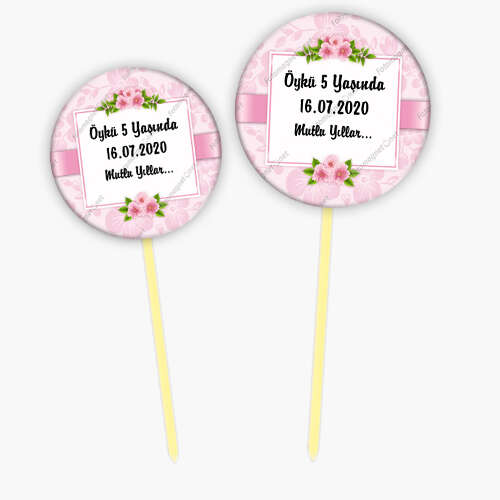 Pembe Çiçek Desenli - Fotoğrafsız - Kürdan Süs