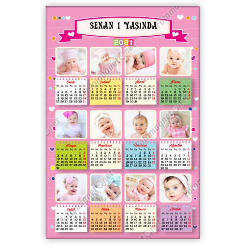 12 Fotoğraflı - 2024 Pembe Takvim Poster