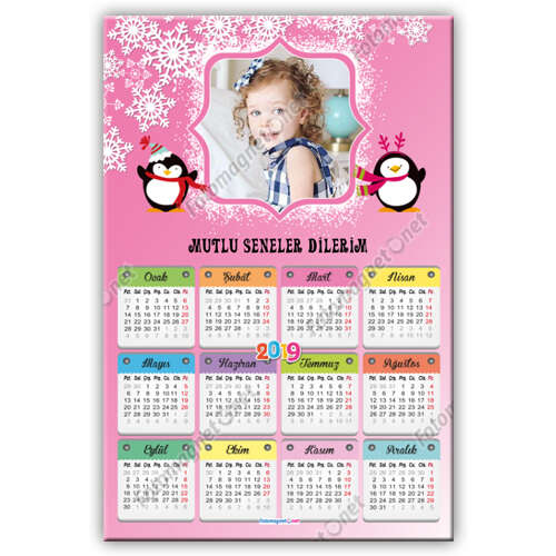 Penguen Temalı Pembe 2024 Takvim Magnet