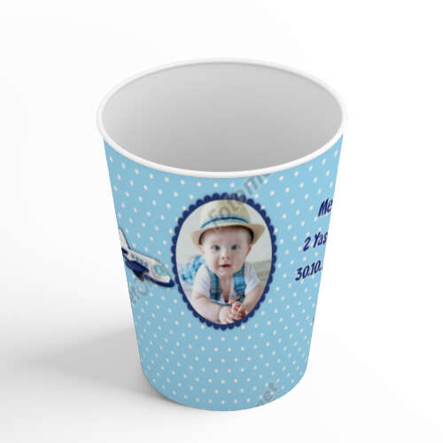 Uçak Temalı Mavi - Karton Bardak - Sargı Etiketi