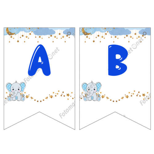 Mavi Dore Sevimli Fil Temalı - Banner - Flama - İkili