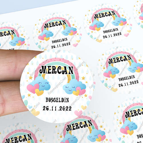 Gökkuşağı Temalı - Hoş Geldin Bebek - Kare - Etiket -