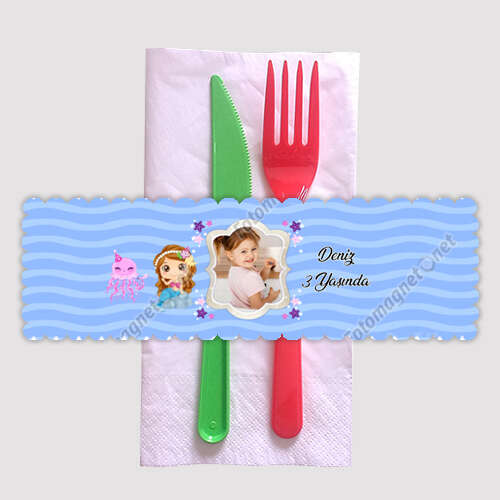 Deniz Kızı Temalı Doğum Günü - Peçete Sargısı
