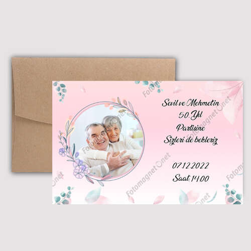 Çiçek Çerçeveli Pembe Konsept Zarflı Davetiye