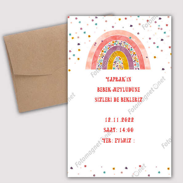 Gökkuşağı Ve Çiçekler Temalı Zarflı Davetiye
