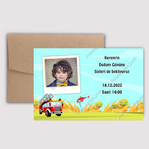İtfaiye Temalı Zarflı - Doğum Günü Davetiyesi