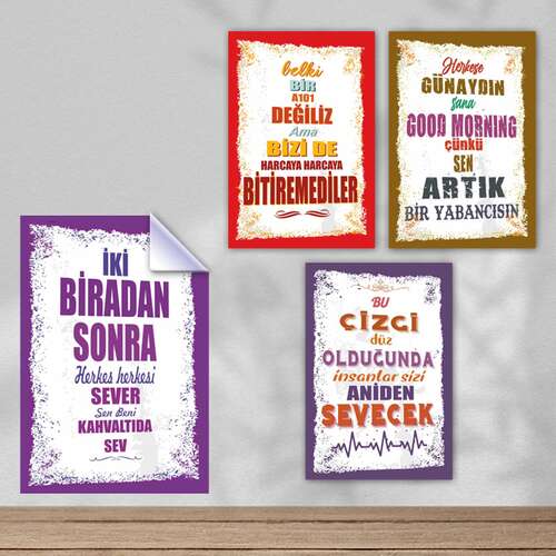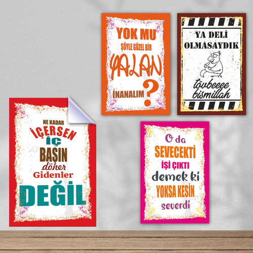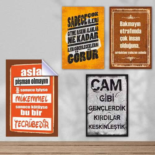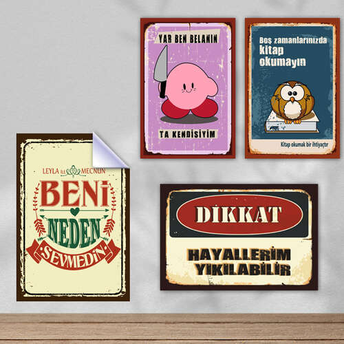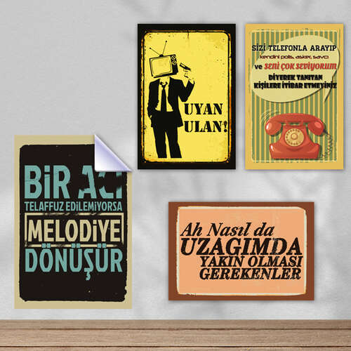Retro Tasarım - Sticker - Etiket - 4lü Set 22
