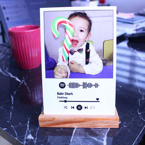 Spotify Barkodlu 10x15 Cm Ahşap Duvar Dekoru Arkası Bantlı