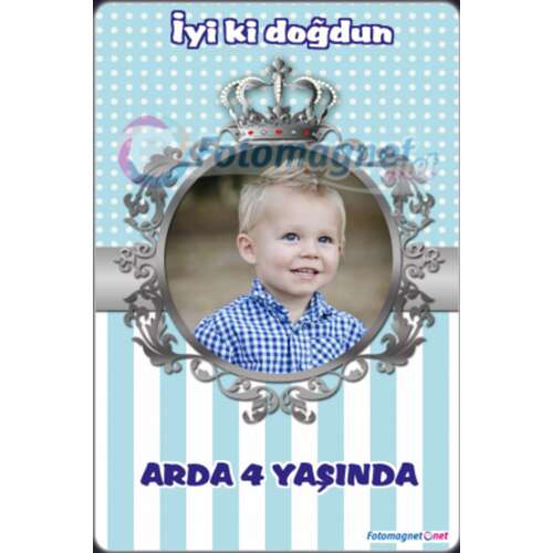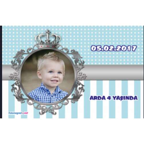 Prens Temalı Gold Taçlı - Fotoğraflı - Magnet