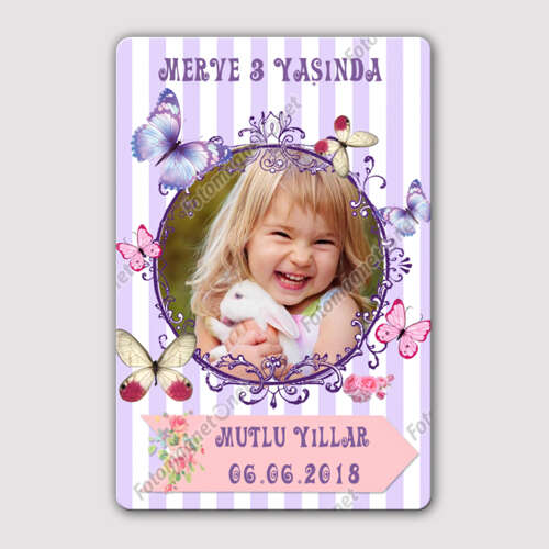 Gümüş Kelebek Temalı - Fotoğraflı - Yatay - Magnet