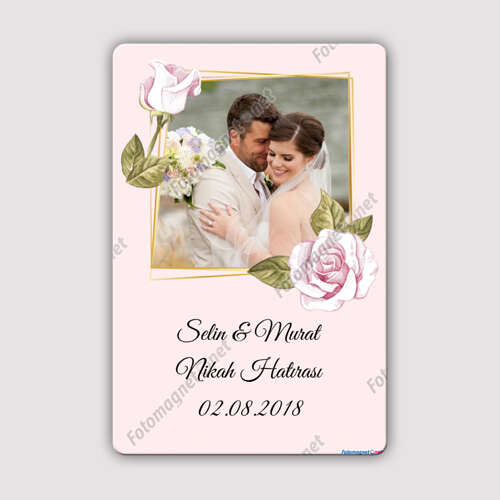 Pembe Gül Temalı - Nişan - Nikah - Hatıra - Magnet
