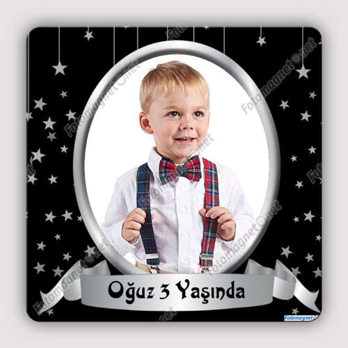 Siyah Gümüş Yıldız Temalı - Kare - Magnet