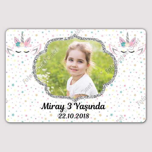 Unicorn Temalı Gümüş Simli - Yatay - Magnet