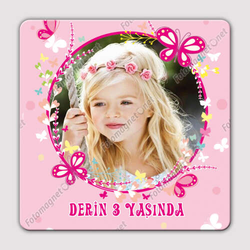 Beyaz Kelebek Temalı - Fotoğraflı - Kare - Magnet