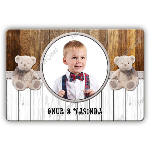 Sevimli Ayıcık Temalı Beyaz Ahşap Desenli - Yatay - Magnet