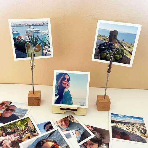 17 Adet Pola Kart Fotoğraf Baskı + 1 Adet Ahşap Stand + Kalpli Mandal