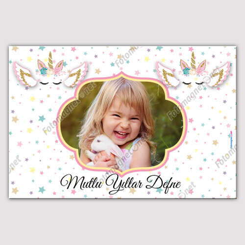 Unicorn Temalı Yıldızlı - Fotoğraflı - Yatay - Poster